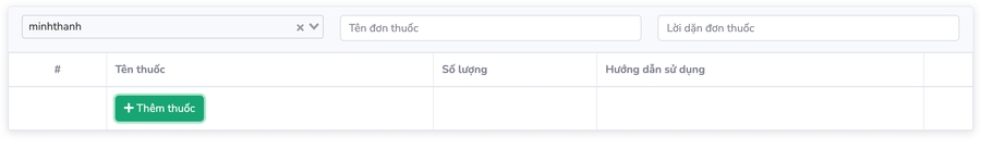 Tại mục chẩn đoán và điều trị, click chuột vào '' thêm đơn thuốc'' để tạo đơn thuốc