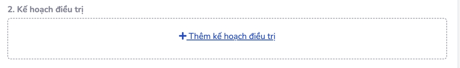 Tại mục chẩn đoán và điều trị, click chuột vào '' thêm kế hoạch điều trị '' để tạo điều trị