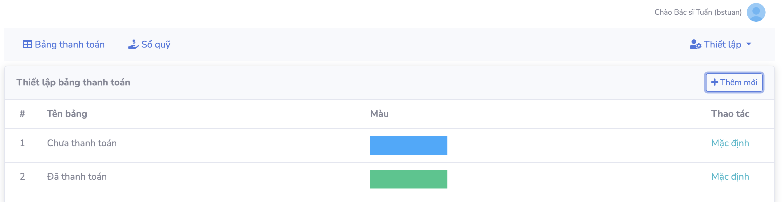 Tại tính năng '' Thu\&Chi '' ở mục '' thiết lập'' chọn '' trạng thái thanh toán '' để đến giao diện sau