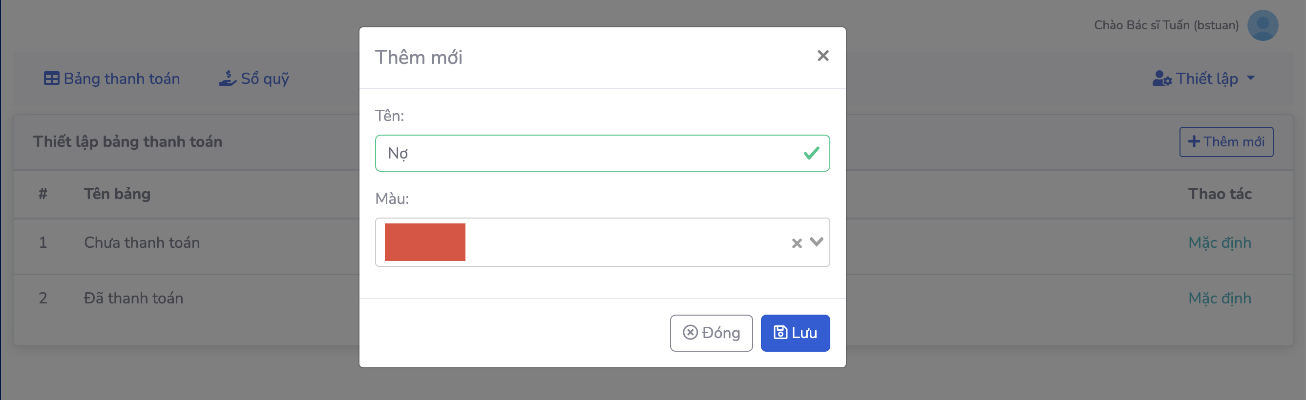 Tại đây. chọn '' thêm mới '' ở góc phải , sau đó nhập tên và chọn màu sắc tương ứng phù hợp